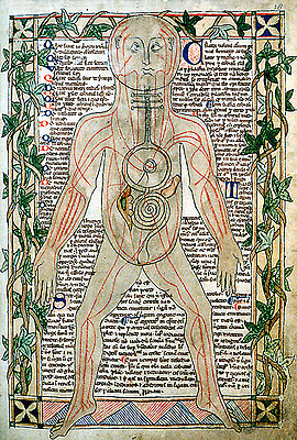 静脈を示す13世紀の図。 詳細は「四体液説」を参照
